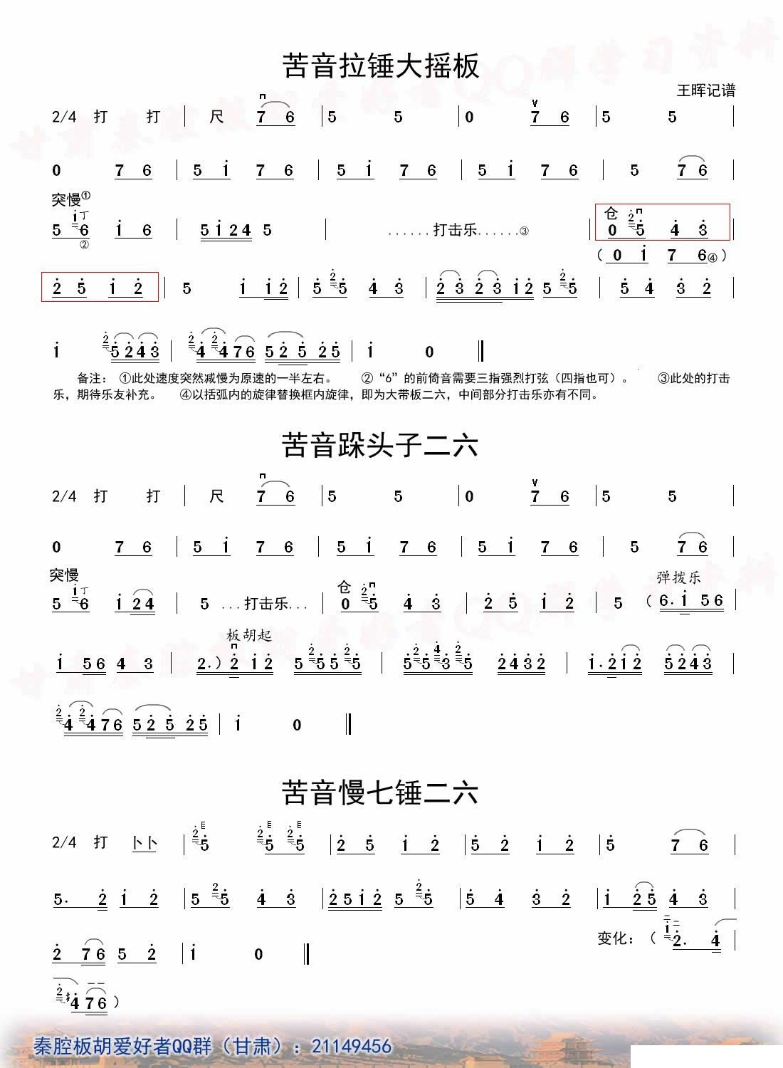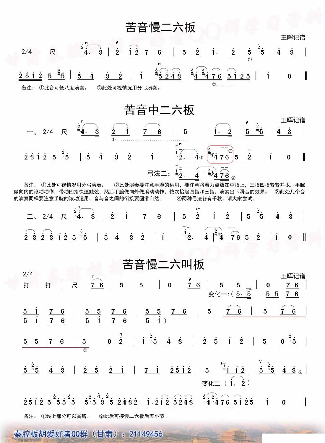 - [二胡谱,秦腔谱] 秦腔 二六板板头 板胡