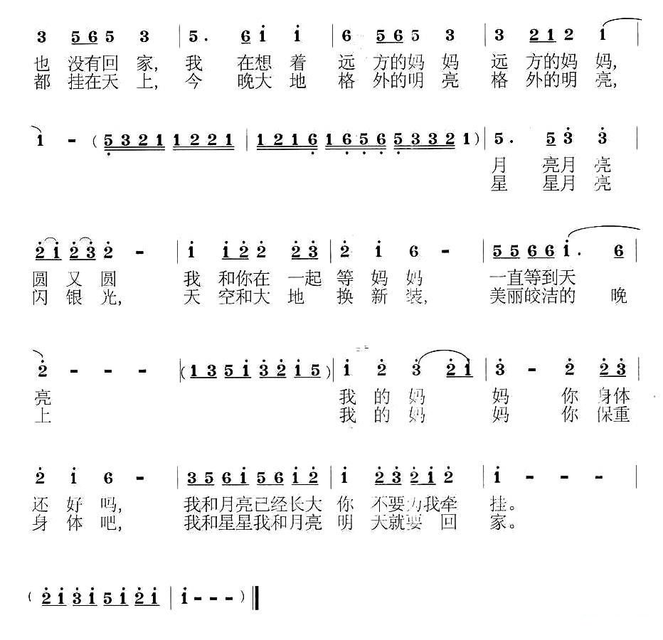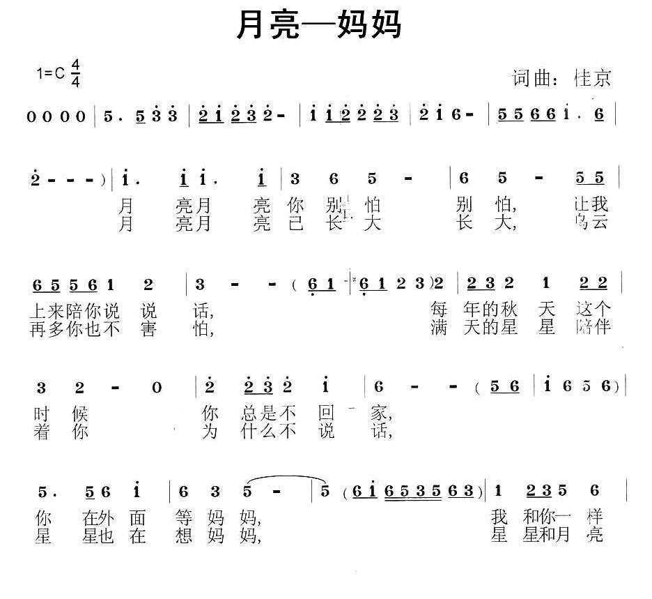 - [歌谱] 月亮 妈妈