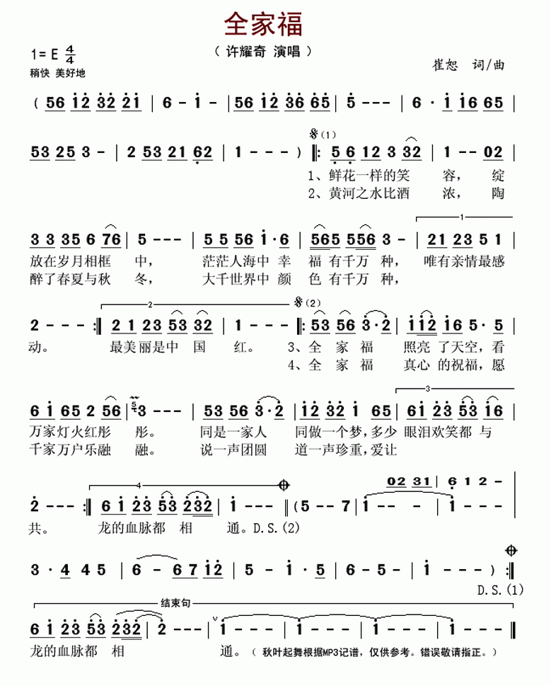 - [歌谱,琵琶谱,唢呐谱] 全家福