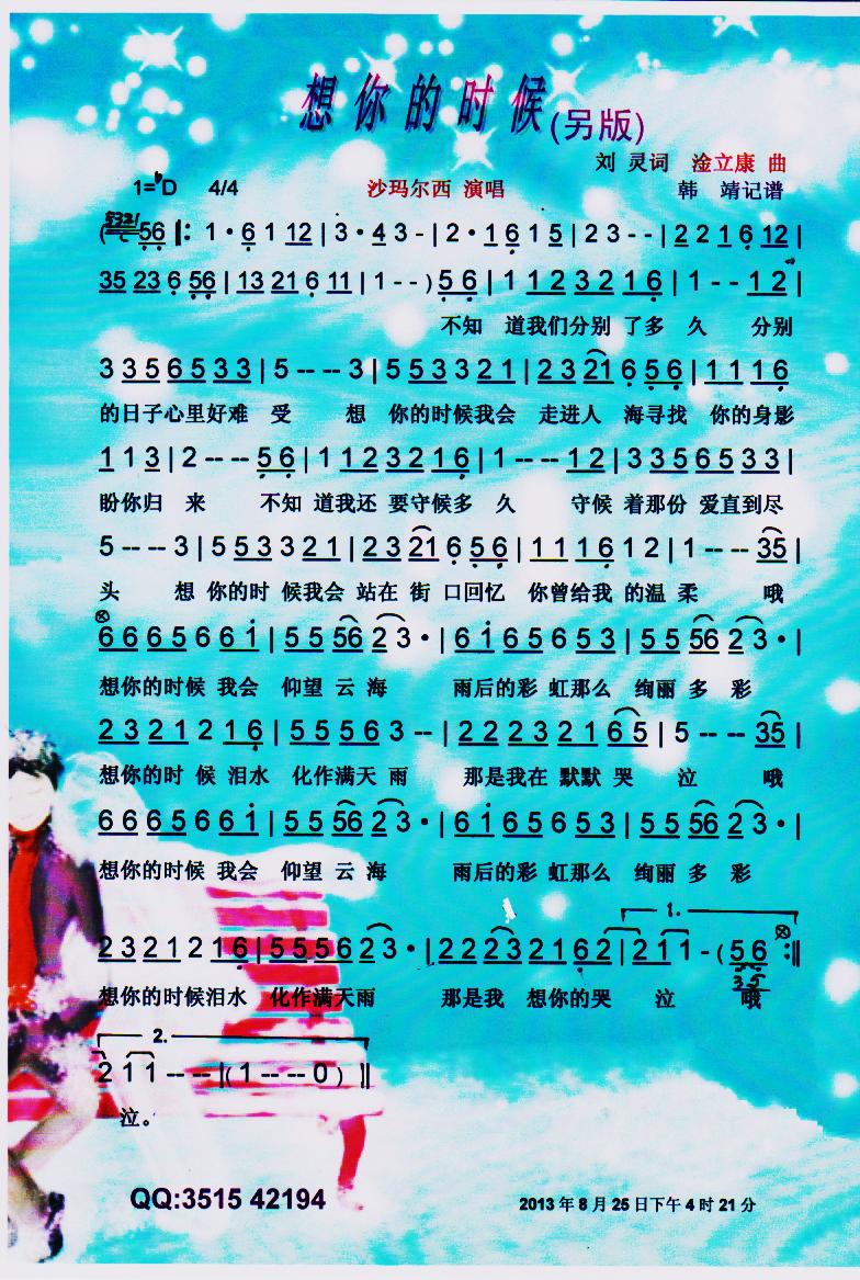 - [钢琴谱,歌谱,吉他谱] 想你的时候