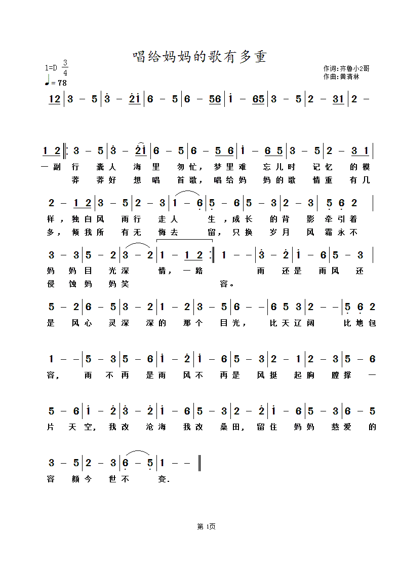 - [歌谱] 唱给妈妈的歌 羊鸣曲