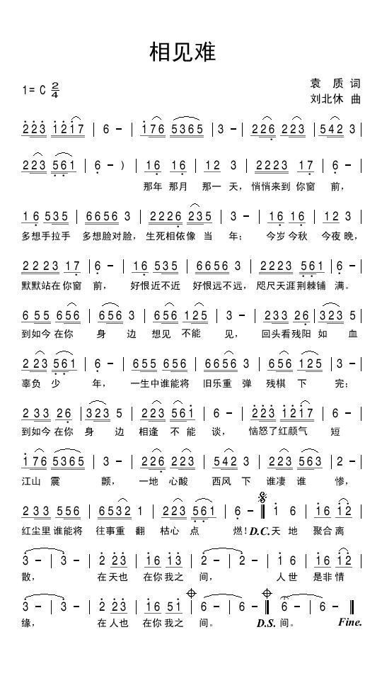 - [歌谱] 相见难