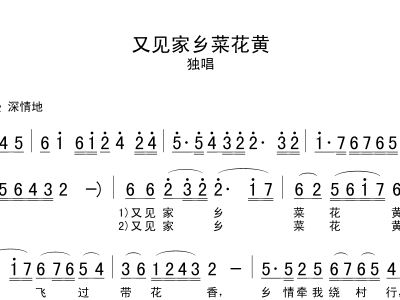 - [钢琴谱,歌谱] 又见家乡菜花黄