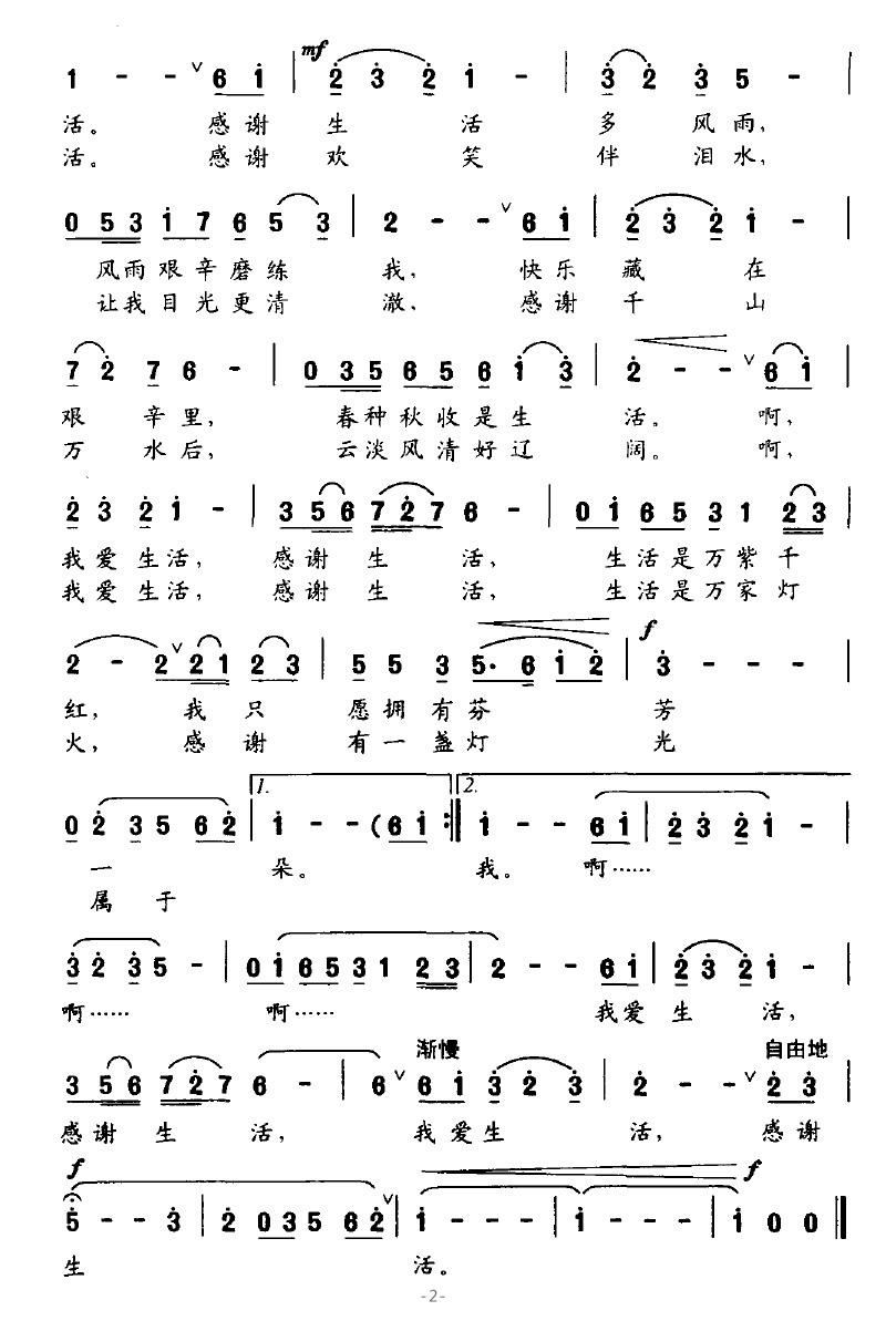 - [歌谱] 感谢生活 电视剧 光荣之旅 主题歌
