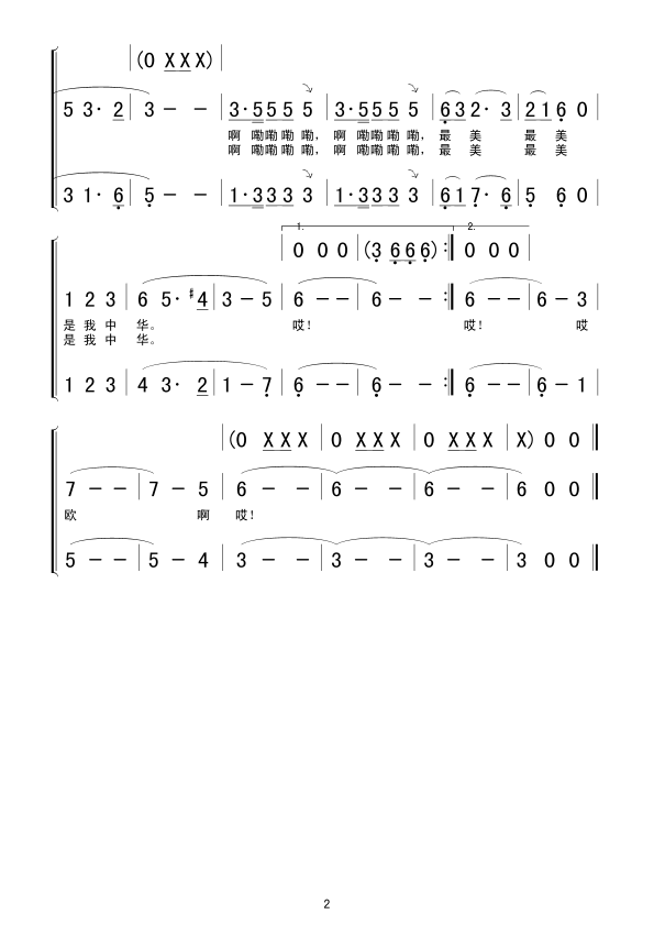 - [歌谱] 最美最美是中华