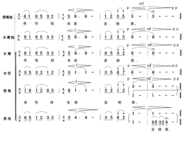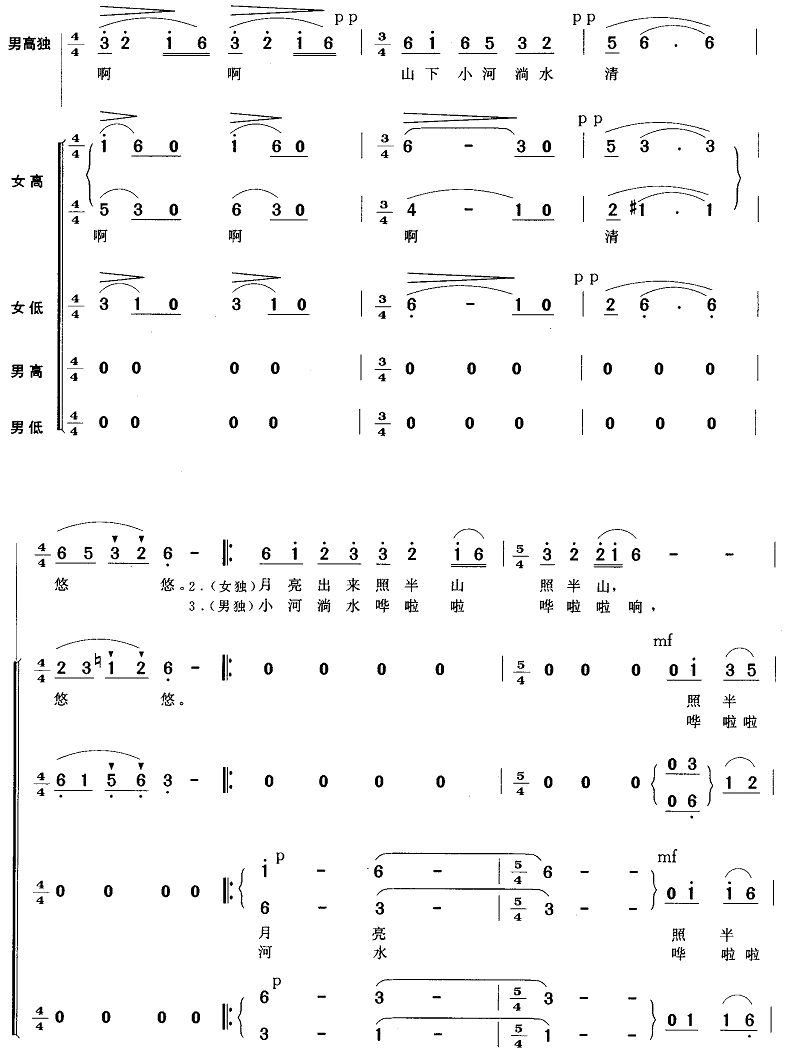 小河淌水 图谱 云南民歌 无伴奏合唱