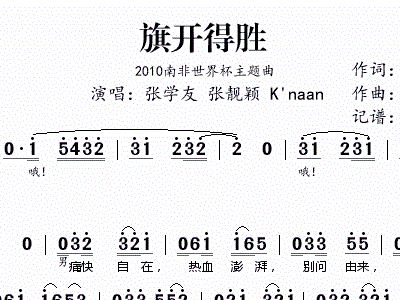 2010南非世界杯主题曲 旗开得胜 高音直笛适用