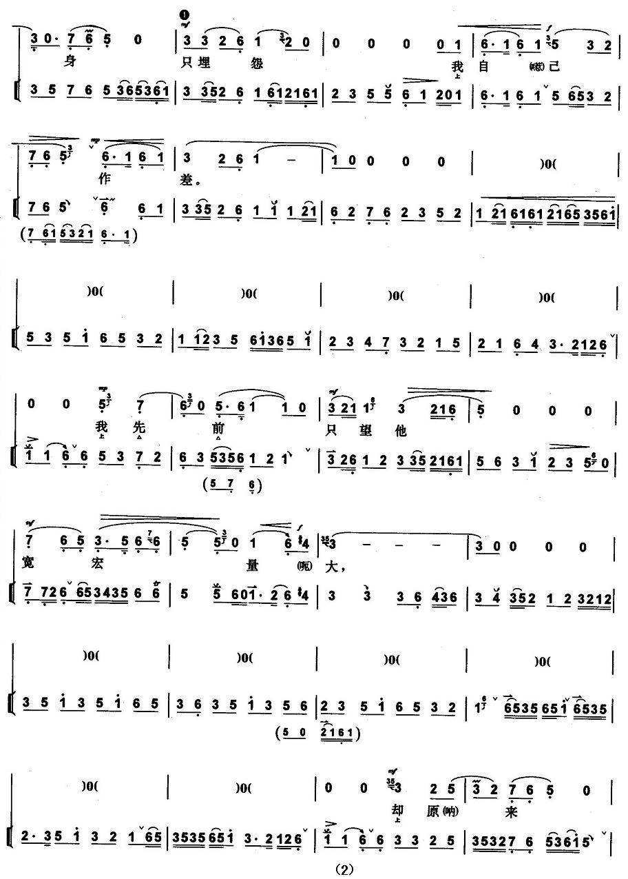一轮明月照窗下 捉放曹 陈宫唱段 琴谱