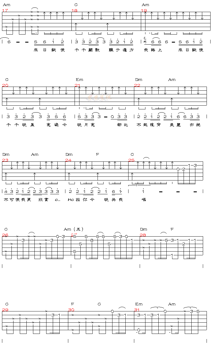 - [歌谱,吉他谱] 千千阙歌 粤语