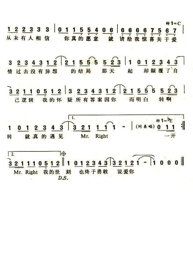 - [歌谱] 说爱你