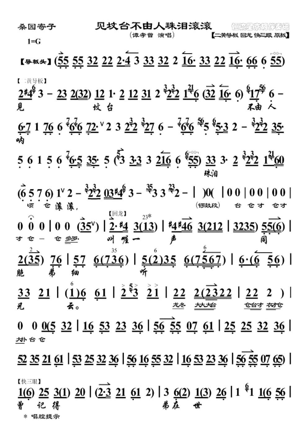 见坟台不由人珠泪滚滚 桑园寄子 选段 琴谱