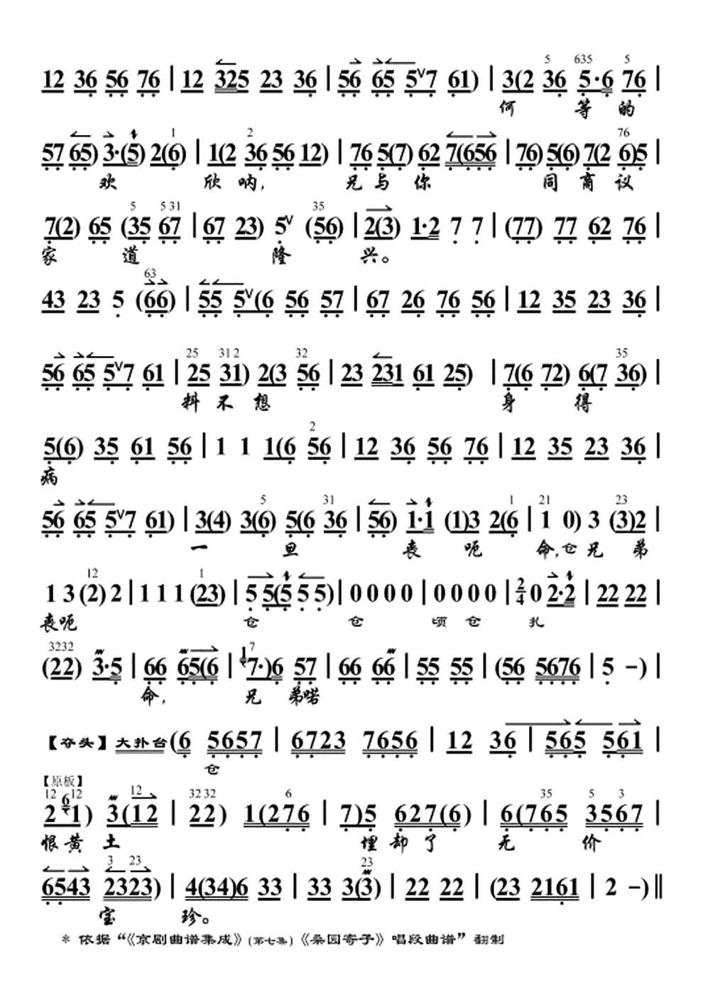 叹兄弟遭不幸一旦丧命 桑园寄子 选段 琴谱