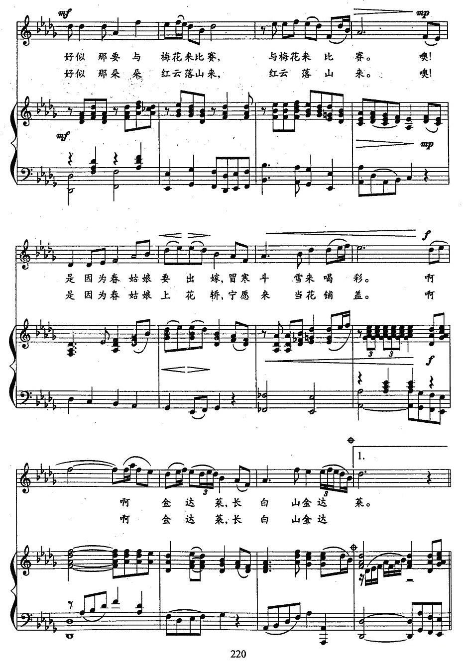 - [钢琴谱] 啊 长白山 钢琴伴奏