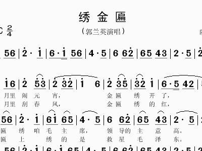 - [钢琴谱,歌谱] 绣金匾 钢伴谱
