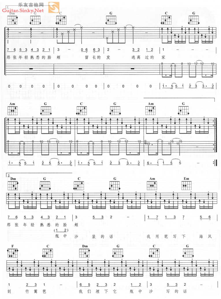 - [歌谱,吉他谱] 瓶中沙