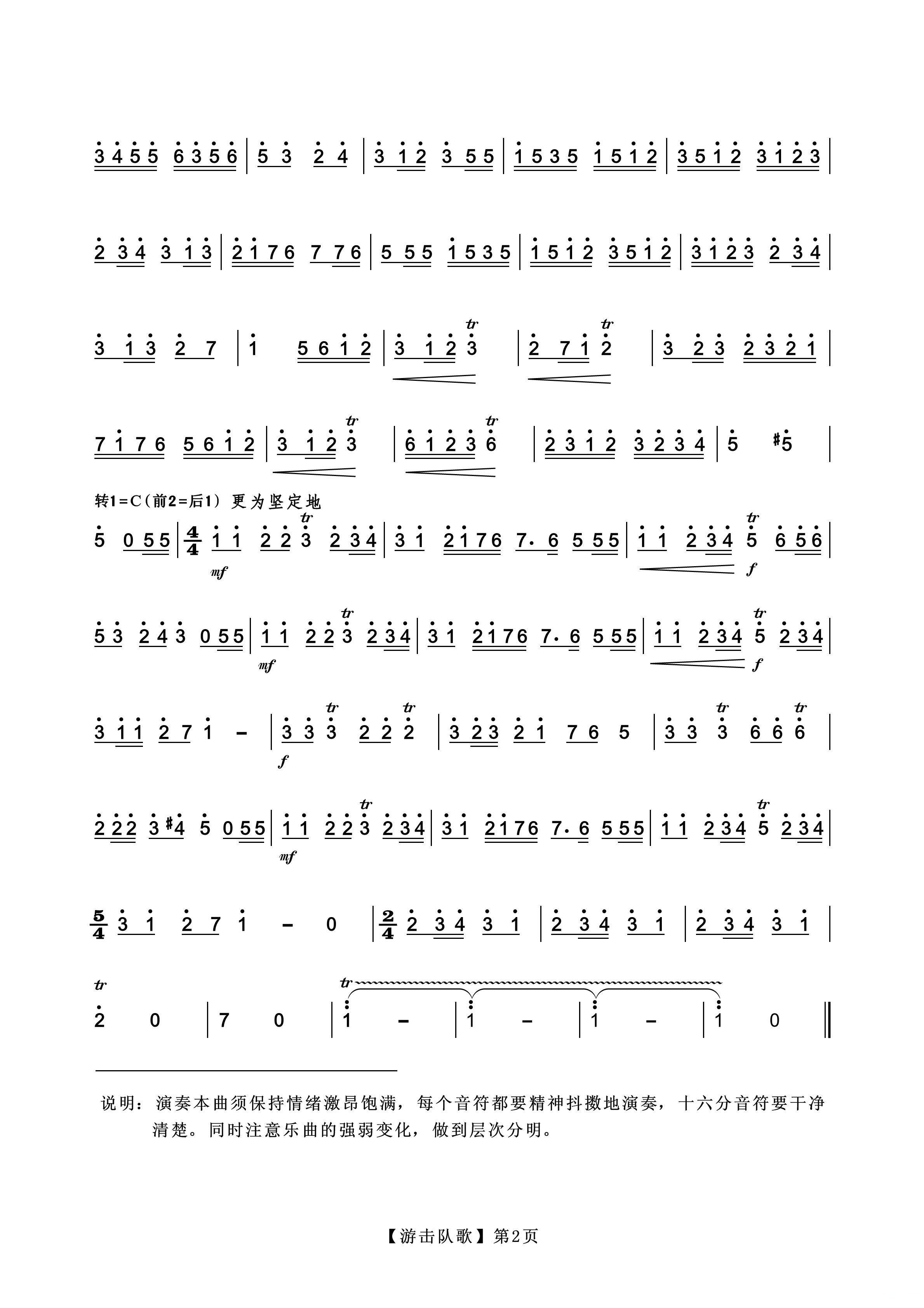 - [笛子谱] 游击队歌 笛子独奏曲