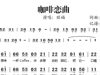 简谱网 > 歌谱 > 咖啡恋曲