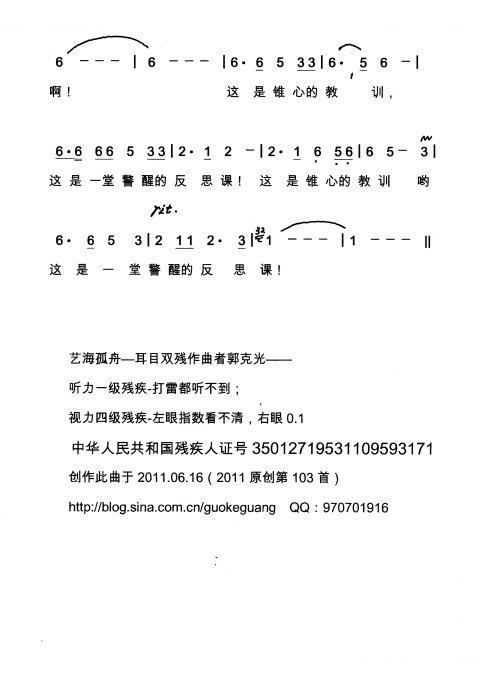 - [歌谱] 反思课