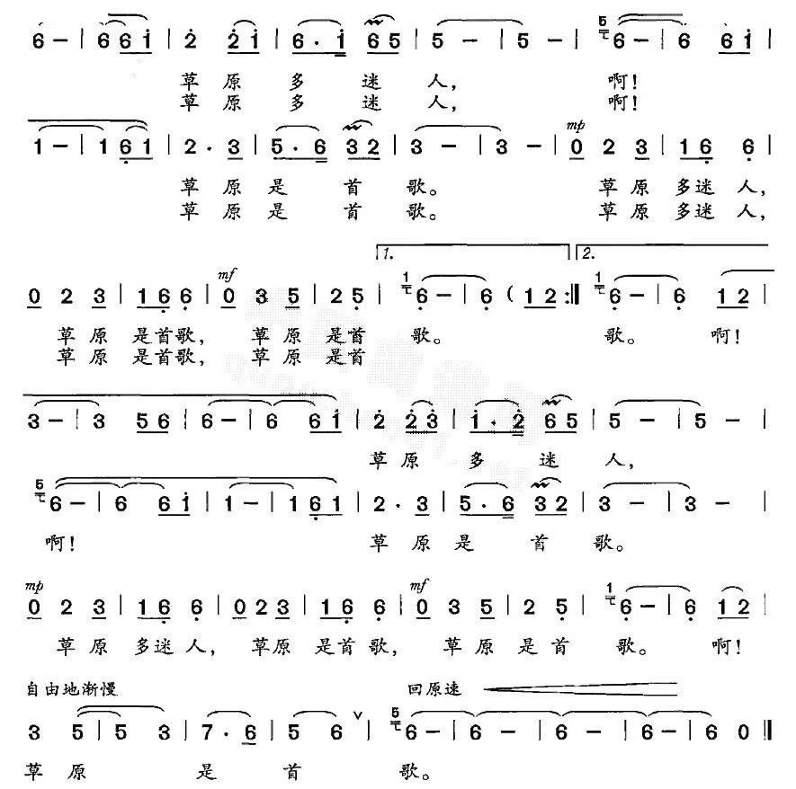 - [歌谱] 草原是首歌 女声独唱