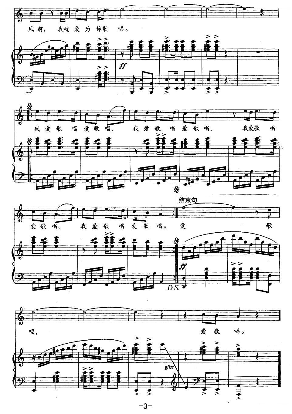 - [歌谱] 我爱歌唱