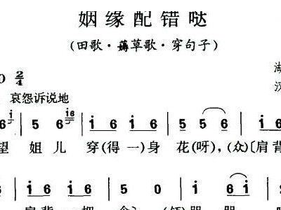 - [歌谱] 姻缘配错哒 田歌 薅草歌 穿句子