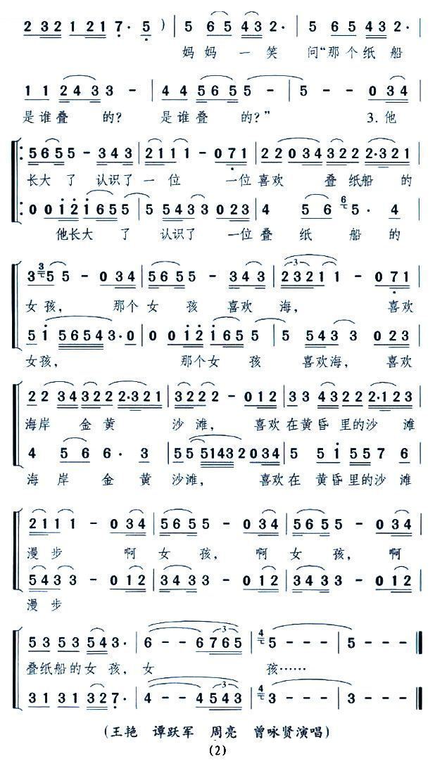 - [歌谱] 叠纸船的女孩 谭跃军等
