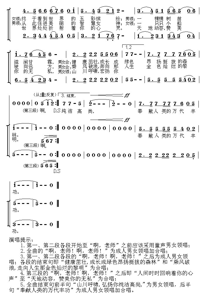 - [歌谱] 你像春雨润心田 又名 教师颂