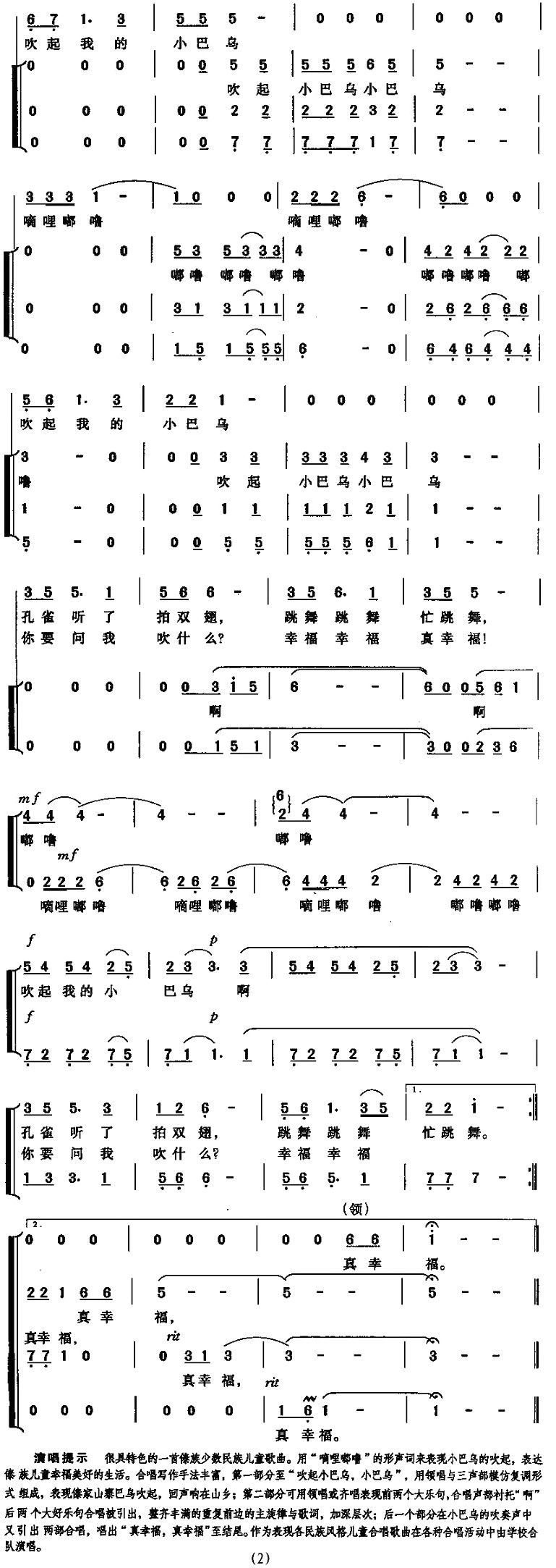 - [歌谱] 嘀哩嘟噜 合唱