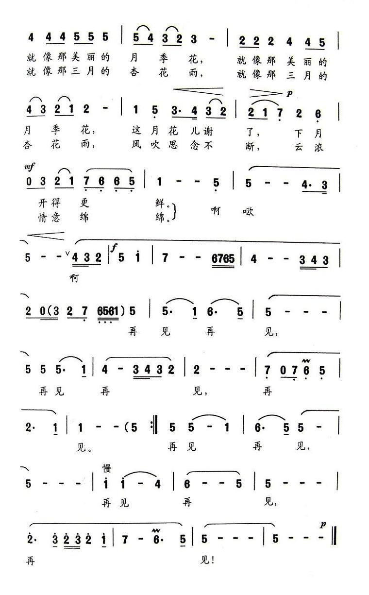 - [歌谱] 再见 版