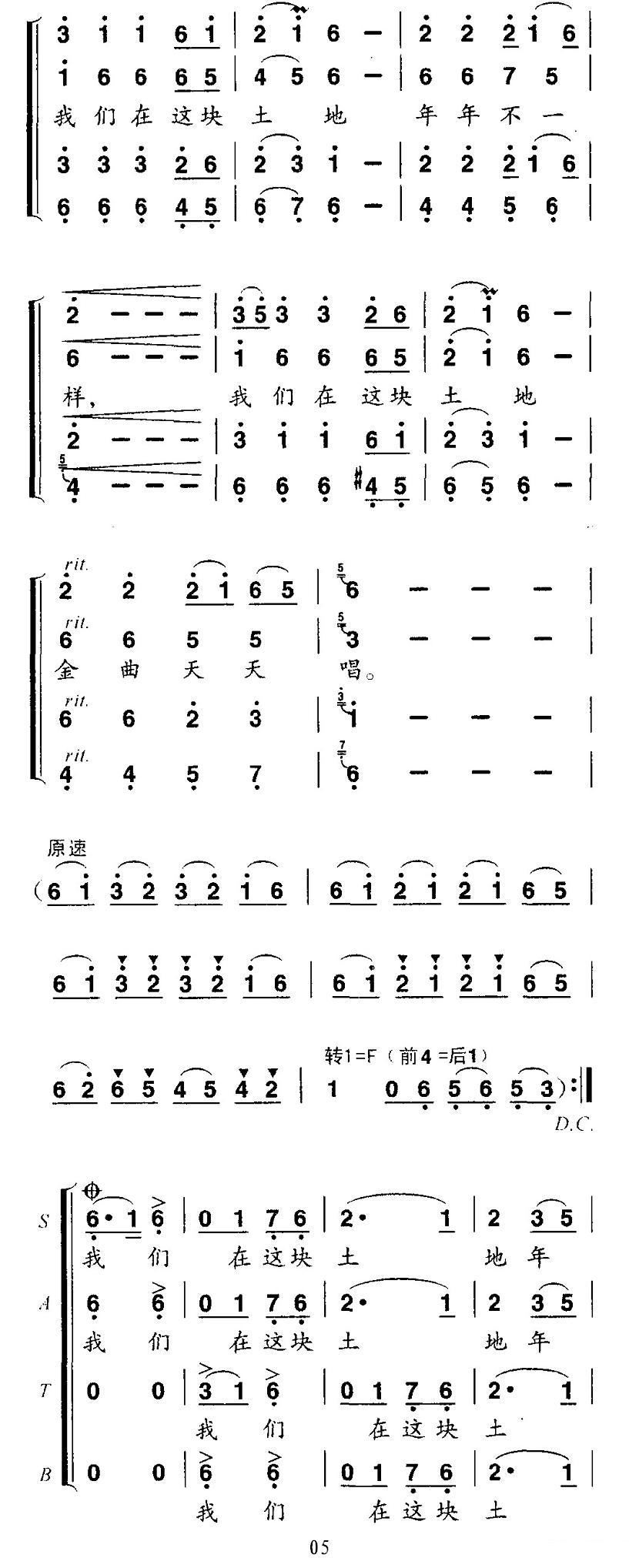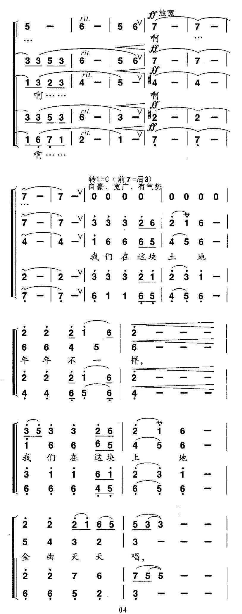 - [歌谱] 我们在这块土地