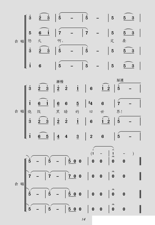 见仇人烈火烧 器乐合奏谱 现代舞剧 白毛女 全剧主旋律 第六场