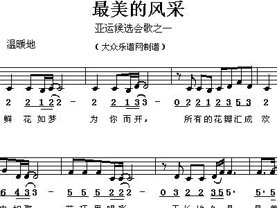 - [钢琴谱,歌谱] 亚运候选会歌 最美的风采