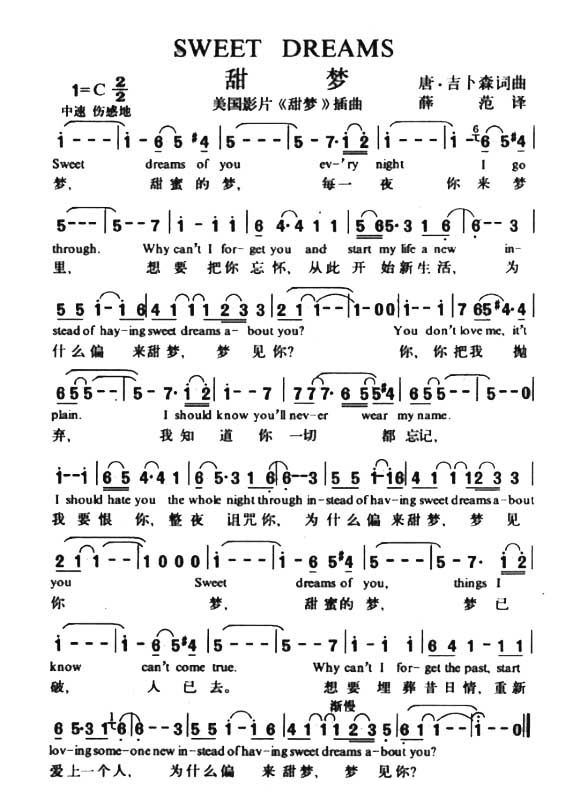 Sweet Dreams 甜梦 美国歌曲 中英文对照