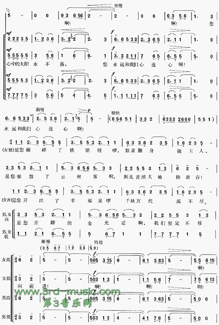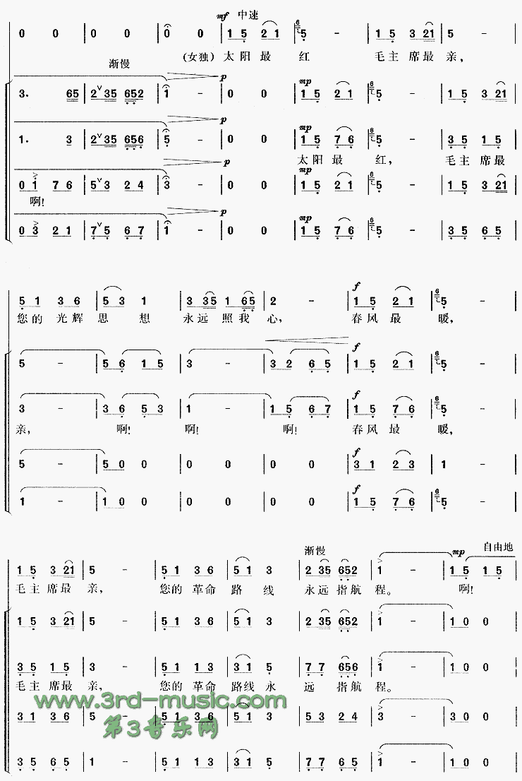 太阳最红毛主席最亲 领唱 四部混声合唱