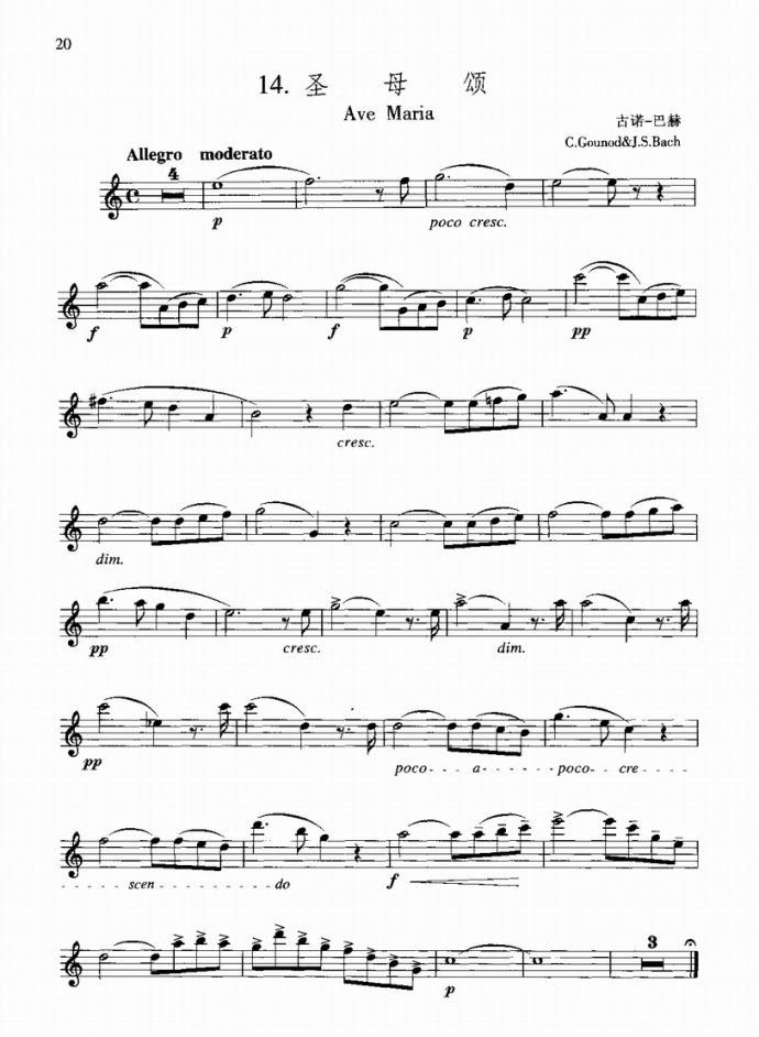 - [笛子谱,长笛谱] 圣母颂 管乐类 长笛