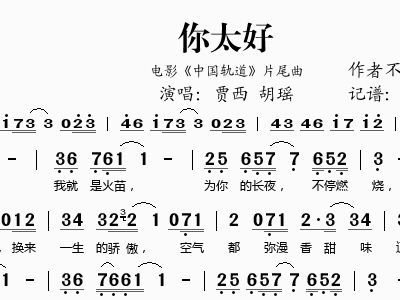 > 你太好 电影 中国轨道 片尾曲 贾西 胡瑶