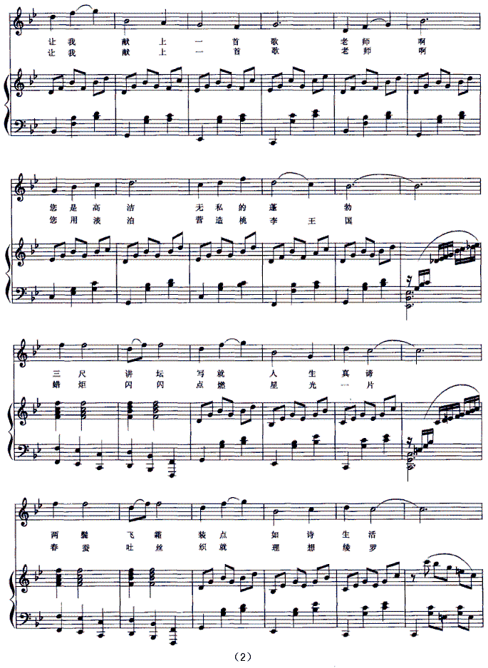 桃李芬芳 混声合唱 献给教师的歌 钢琴伴奏谱