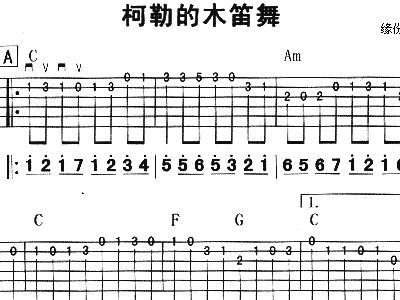 - [笛子谱,钢琴谱,吉他谱] 柯勒的木笛舞 吉他独奏曲