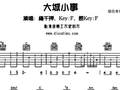 - [歌谱,吉他谱] 大城小事 杨千桦