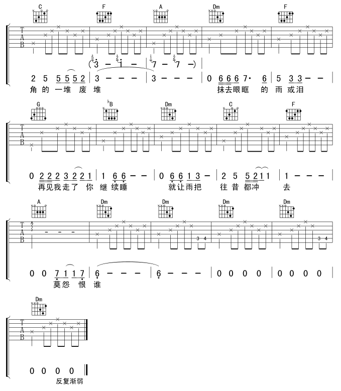 - [歌谱,吉他谱] 是雨是泪 粤语
