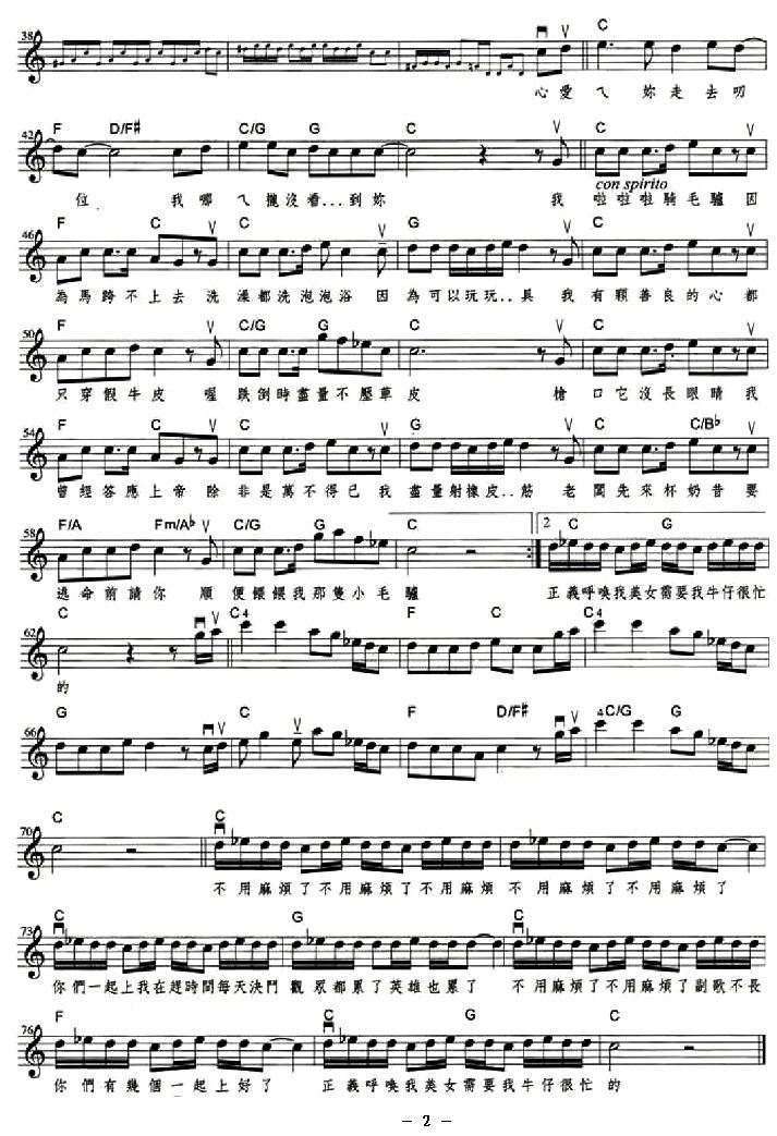 - [钢琴谱,歌谱,吉他谱] 牛仔很忙