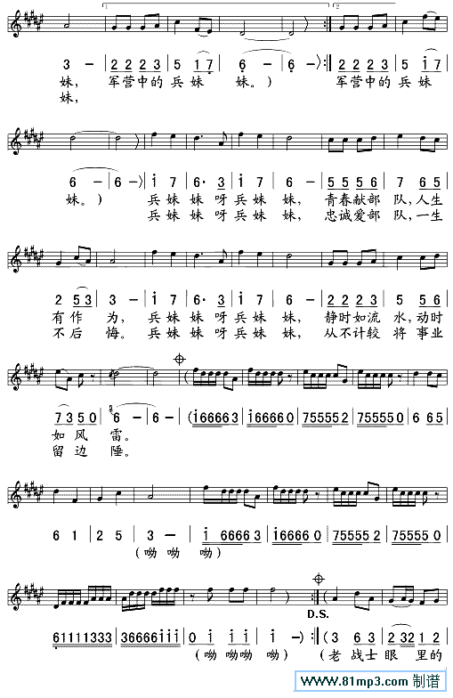 - [歌谱] 兵哥哥兵妹妹 军歌 彩谱