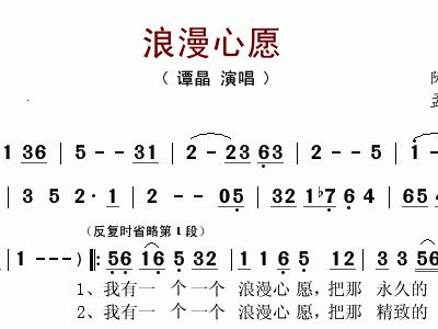 - [歌谱] 浪漫心愿 谭晶