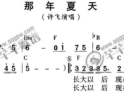 - [歌谱,吉他谱] 那年夏天 弹唱谱