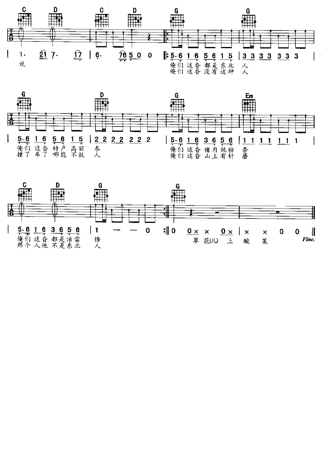 > 东北人都是活雷锋 吉他弹唱