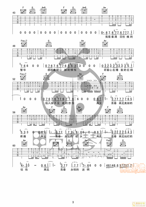 - [吉他谱] 再见青春 电视剧 北爱 插曲 教学视频教学 下载