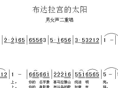 - [钢琴谱,歌谱] 布达拉宫的太阳 西藏民歌