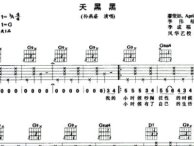 - [电子琴谱,歌谱,吉他谱] 天黑黑 孙燕姿