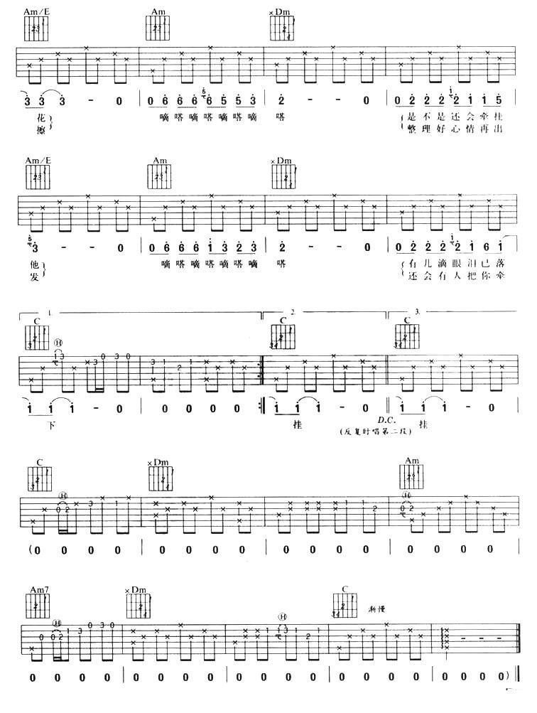 - [歌谱,吉他谱] 嘀嗒原版弹唱