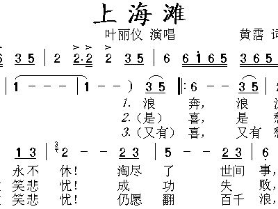 - [单簧管谱,歌谱,手风琴谱] 上海滩